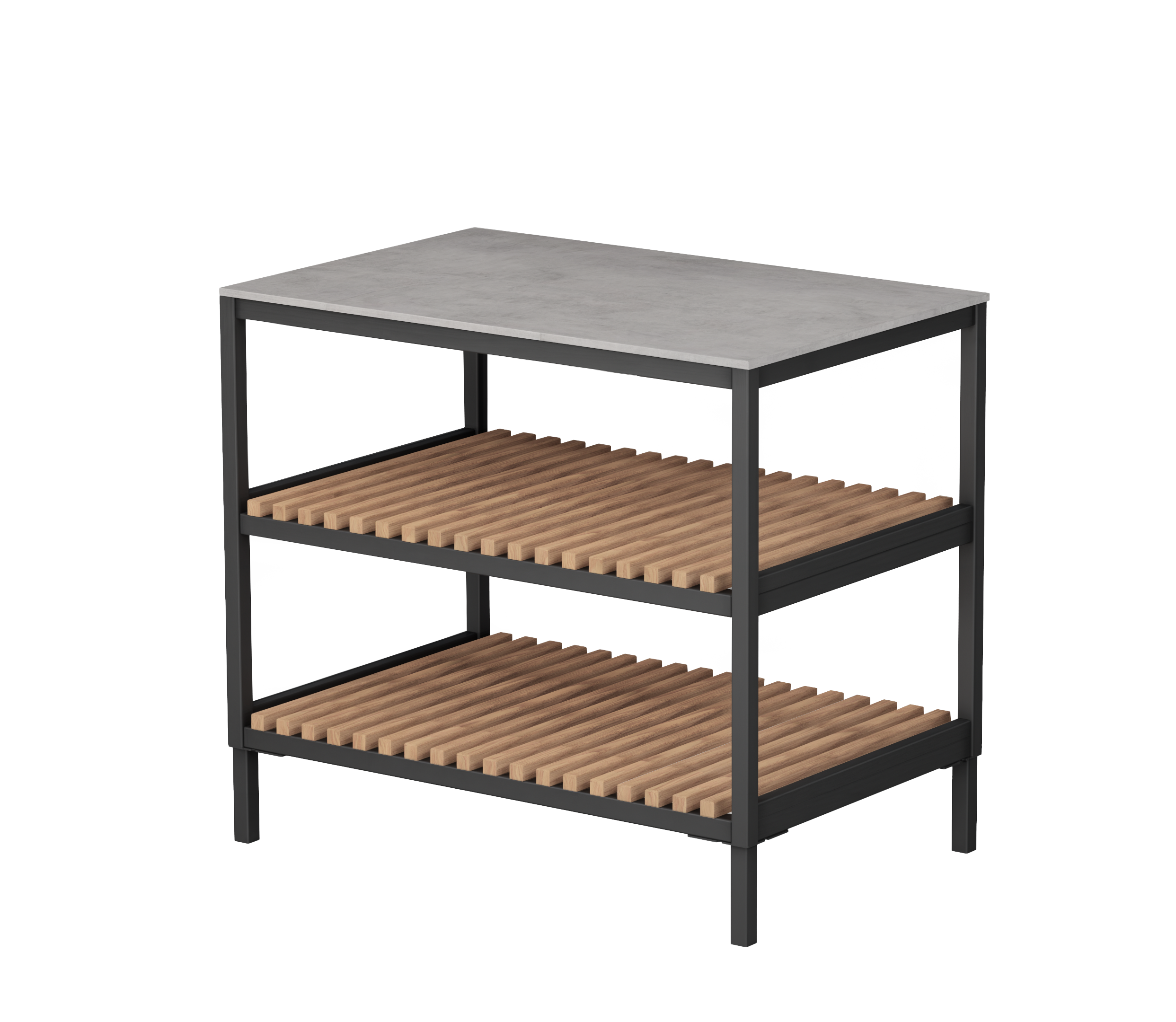 Enten du trenger plass til redskaper, serveringsutstyr eller ekstra tilbehør, kan du velge mellom lukkede skap eller åpne hyller – alt utformet for å passe sømløst inn i resten av systemet.